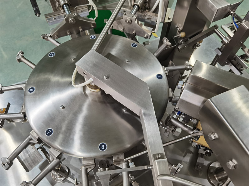 | Work steps | giving bag→coding →opening →filling 1 →filling 2→ auxiliary→ exhaust→heat sealing→ .forming and output product | |