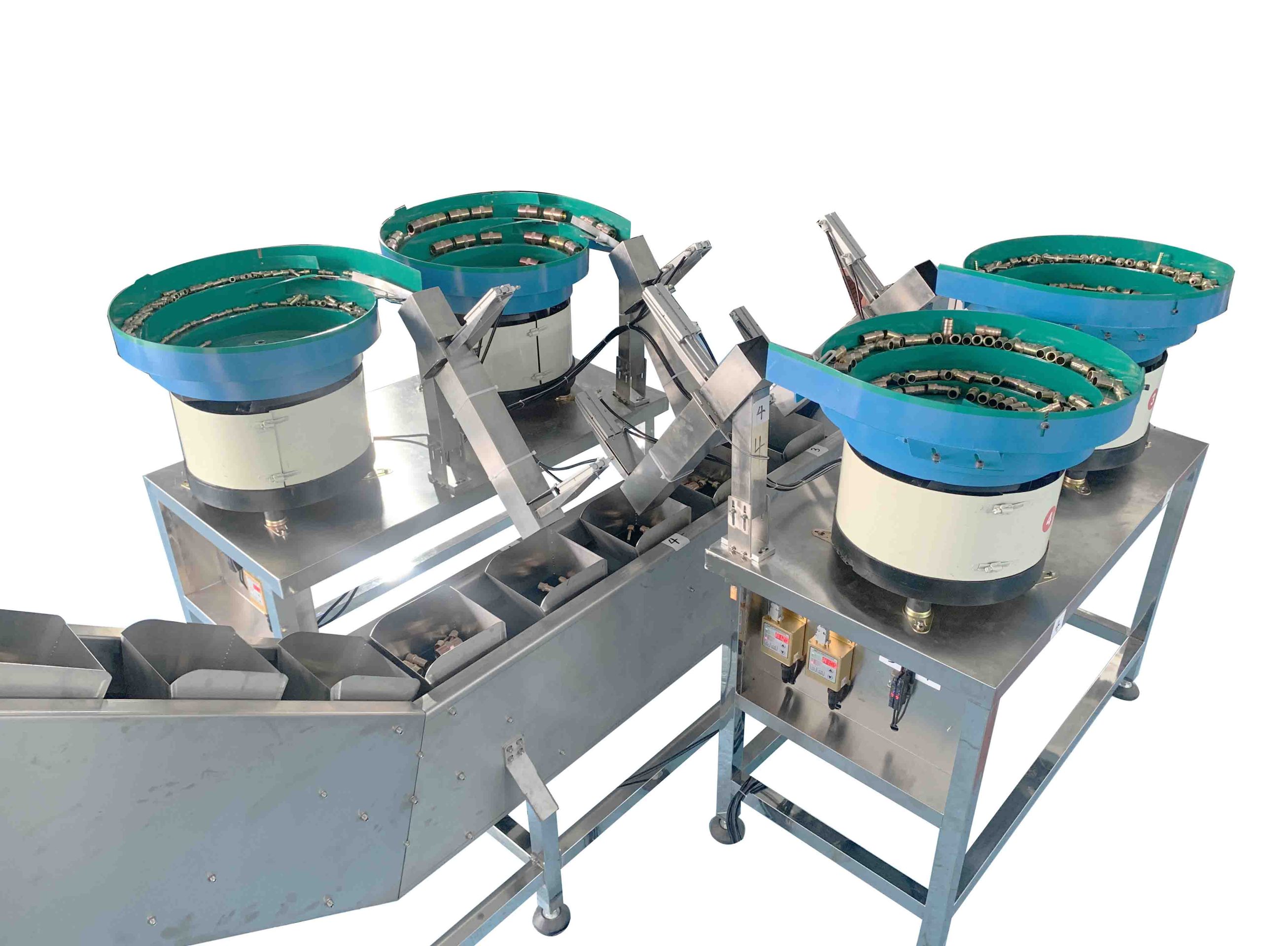 • Using Vibrate feeders, and counting sensors, capable of packing different kind of fittings.