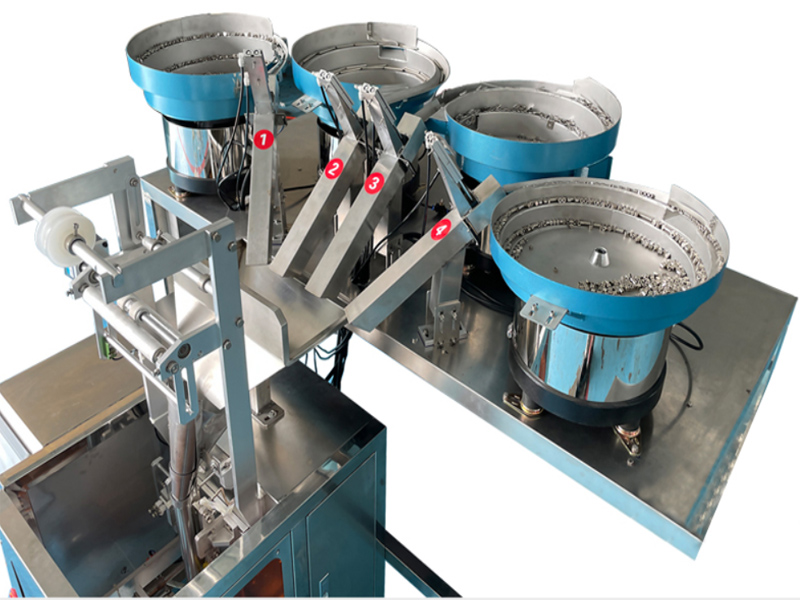 Furniture fittings counting packing machine with fiber sensor counting, capable of counting packing different kinds of furniture fittings, like screws, bolts, nuts, hinges, sleeve, handles, bearings etc.